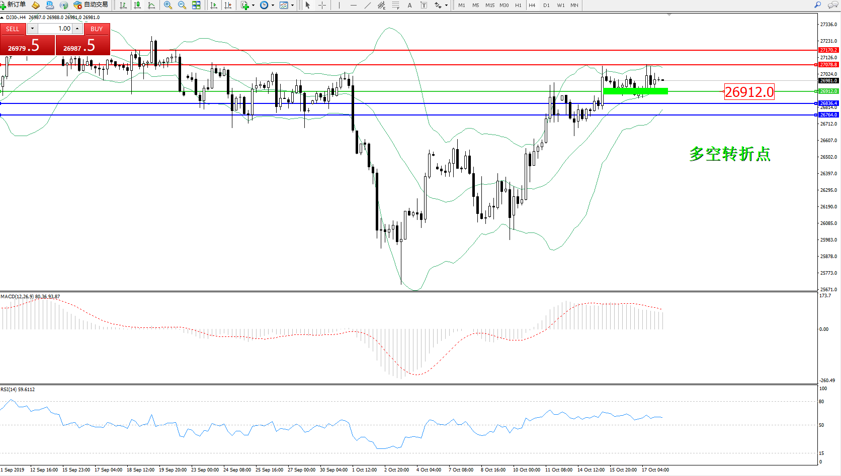 道琼斯指数1017日(周四)收盘上涨23.90点,涨幅0.09%,报27025.88点。美国股市收高,逼近纪录高点,一连串的公司业绩大多表现不俗。摩根士丹利表示,毫无疑问风险有所降温,全球地缘政治和经济风险比两周前有所降低,但这可能只是虚幻的曙光。我们目前还不清楚,预测的水晶球仍然非常模糊。另一份报告显示美国制造业产值创五个月来最大跌幅。