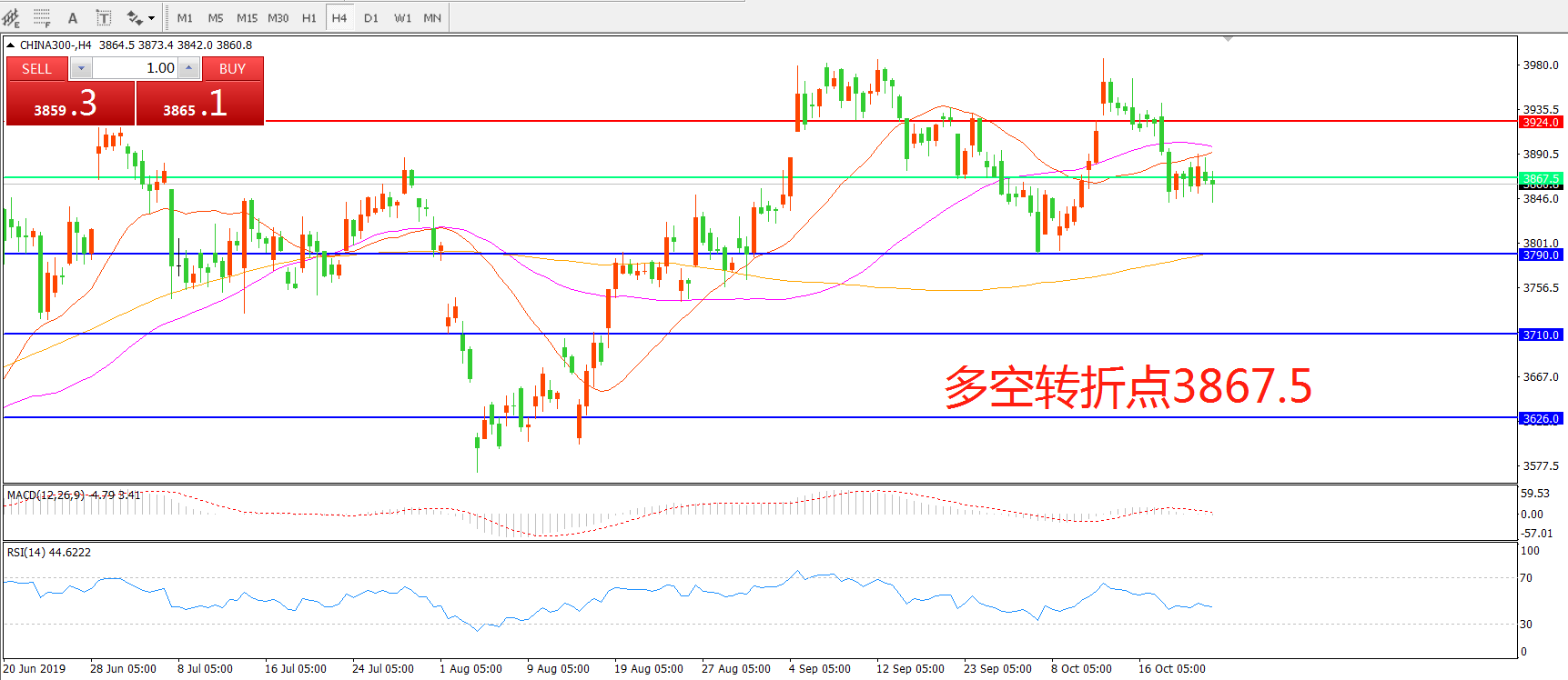 4小时图看,沪深300维持窄幅震荡,整体走势有止跌迹象,3980、3924成为上方明显阻力,均线系统走平,MACD红柱缩短,RSI指标向下,日内延续震荡概率较大。