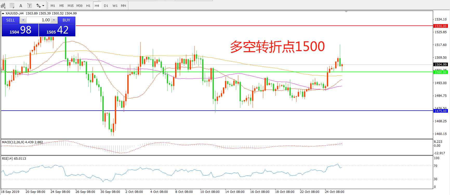 多空转折点:1500.00