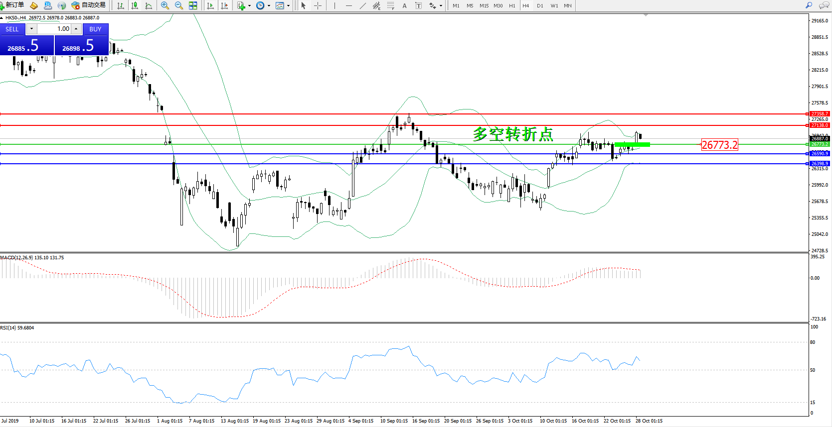 港股跟随外围造好而高开过百点后扩大升幅,恒指高见27005,曾经突破27000,但仅也是一闪即逝,再度回落、并在附近横行。中美双方就会谈问题,达成初步协议,周内聚焦在联储局减息,及多项经济数据,包括有国内生产总值 GDP 10月份就业数据。区块链火热,而本周脱颖而出的一定会是真正的区块链概念股。未来随着第二波、第三波的炒作,随便什么公司都可能会涉及区块链。区块链可以认定是一个大主题,这个去年在民间炒作后归于平静的概念,自上峰的政策指令颁布后,又焕发了新的活力,注意这个消息是从顶层传达的,未来会层层推进,每一层推进,每一个消息,都是炒作这个概念的良机,可谓是真正的想象空间巨大。