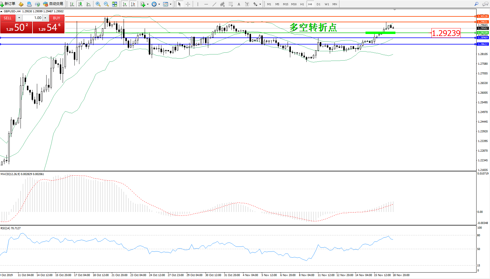 交易策略:1.29239上方看涨,目标1.29831、1.30128