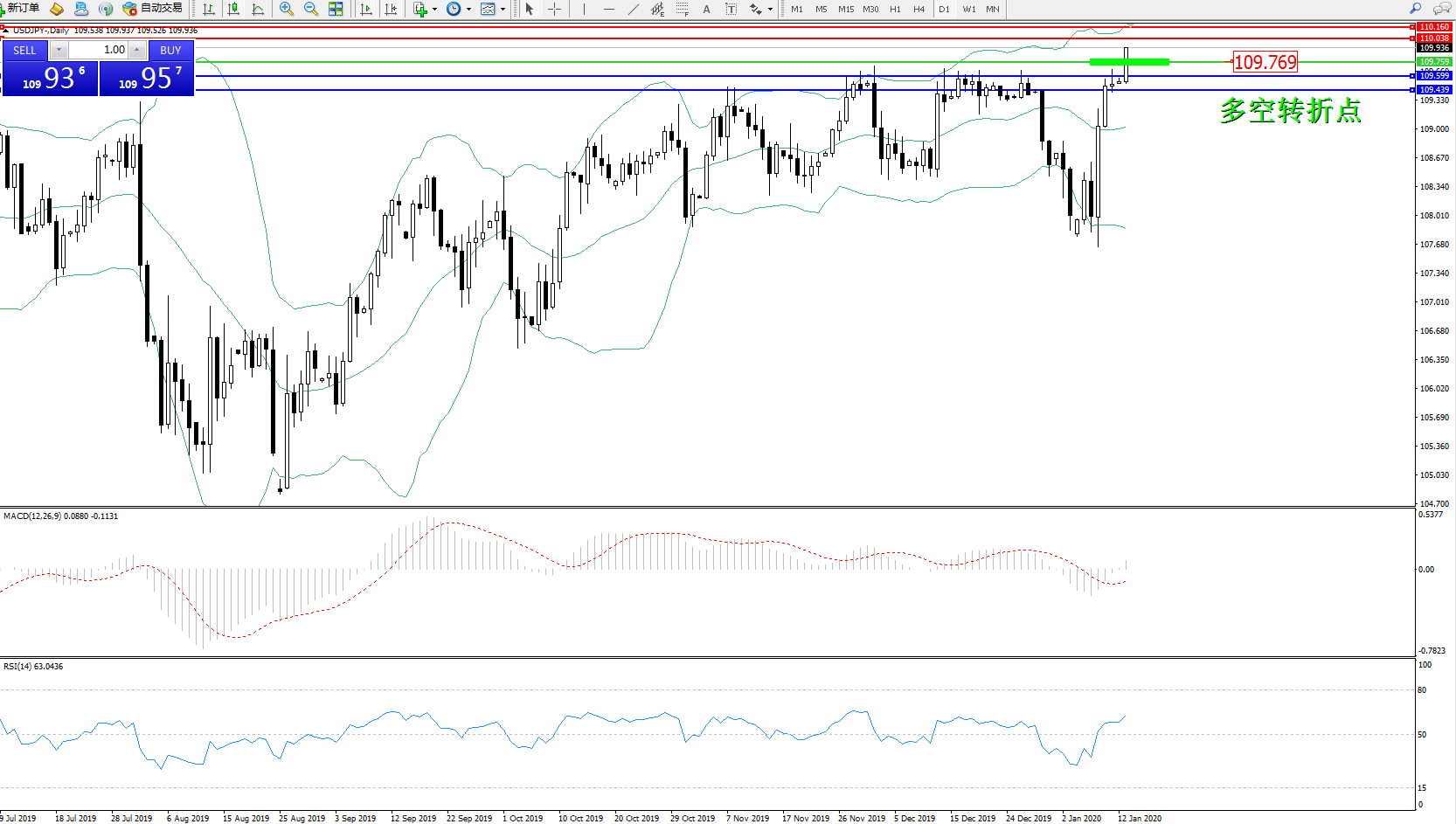 美元兑日元上涨0.46%109.95;为去年523日以来最高;日内美元指数重拾涨势,市场已经基本摆脱上周五美国12月非农就业数据不及预期的打压。投资者对全球经济与贸易前景仍持乐观预期,加之中东地缘局势风险进一步降温,都令避险日元遭到继续抛售;同时,投资者也对此后中美签署贸易一阶段协议的前景表达出了强烈的乐见情绪,这推动避险资产在日内被进一步抛售。