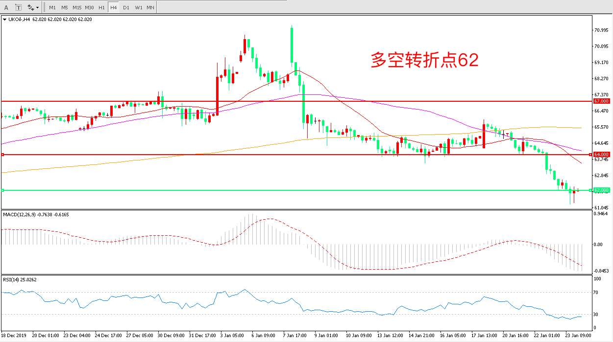 交易策略:在62.00之下看跌,目标60.00    57.00