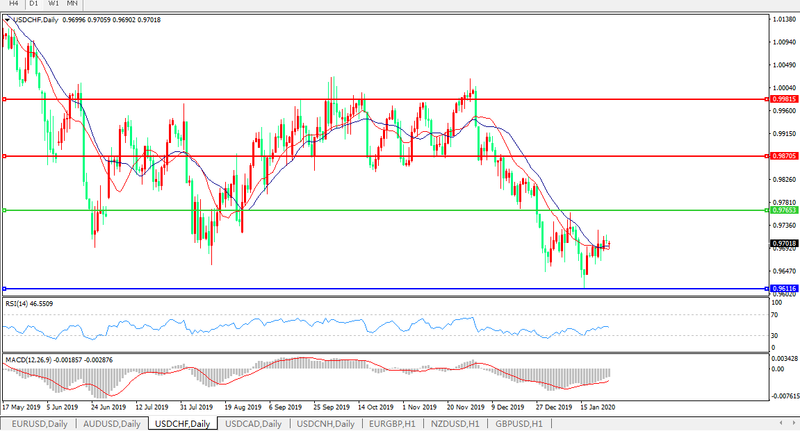 交易策略:0.9765下方看跌,目标0.9600、0.9550