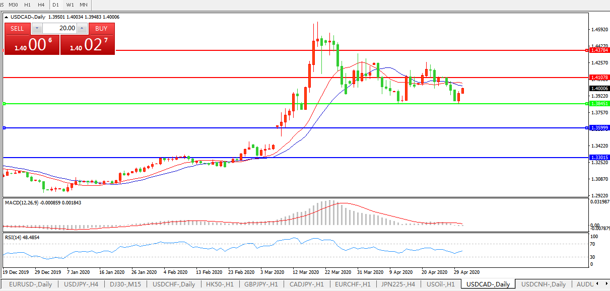 交易策略: 在1.3845之上,看涨,目标价位为1.4100、1.4378