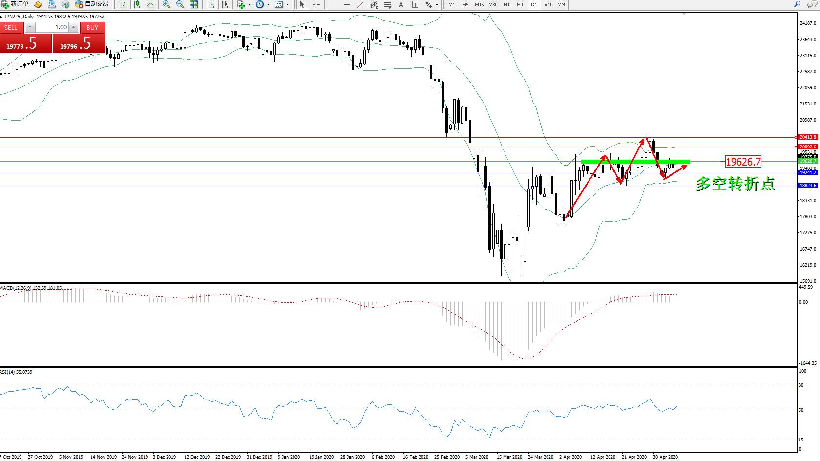 日经225指数5月7日(周四)收盘上涨12.15点,涨幅0.06%,报19631.50点。日内亚洲股票市场有所承压,避险情绪并未消散,全球市场情绪再度转暖,一方面投资者对于发达经济体恢复经济正常运行的预期进一步升温,另一方面,美国失业人数大幅增加的状况也已经被市场提前消化,因此,大家更关注的是疫情过后就业与经济活动恢复的前景。日本央行在今日购买了20亿日元的日本房地产投资信托基金(REITs),日本央行提出购买3400亿日元1-3年期日本国债。
