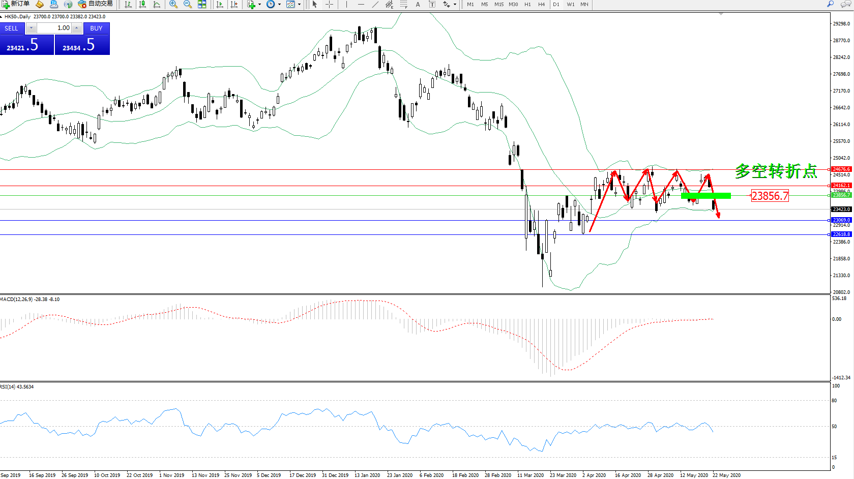 香港恒生指数5月21日(周四)收盘下跌119.92点,跌幅0.49%,报24280.03点;港股三大指数收跌,生物医药B类股午后全线大跌, 康希诺生物-B跳水暴跌13%,或与牛津ChAdOx1 nCoV-19疫苗宣告失败有关;半导体、在线教育、体育用品、航空股、濠赌股皆现普跌行情,三大航空股均跌超2%,中芯国际大跌超7%;前期强势的SaaS概念股全部走低,中国有赞跌逾5%。美国股市显示出自3月的大幅下跌中复苏的迹象,但许多基金经理对美国股市的前景并不乐观。投资者应仔细考虑在当前环境下购买美国股票是否正确;外围股市中概股普跌,美参议院通过一项新法案或导致中概股大量退市。