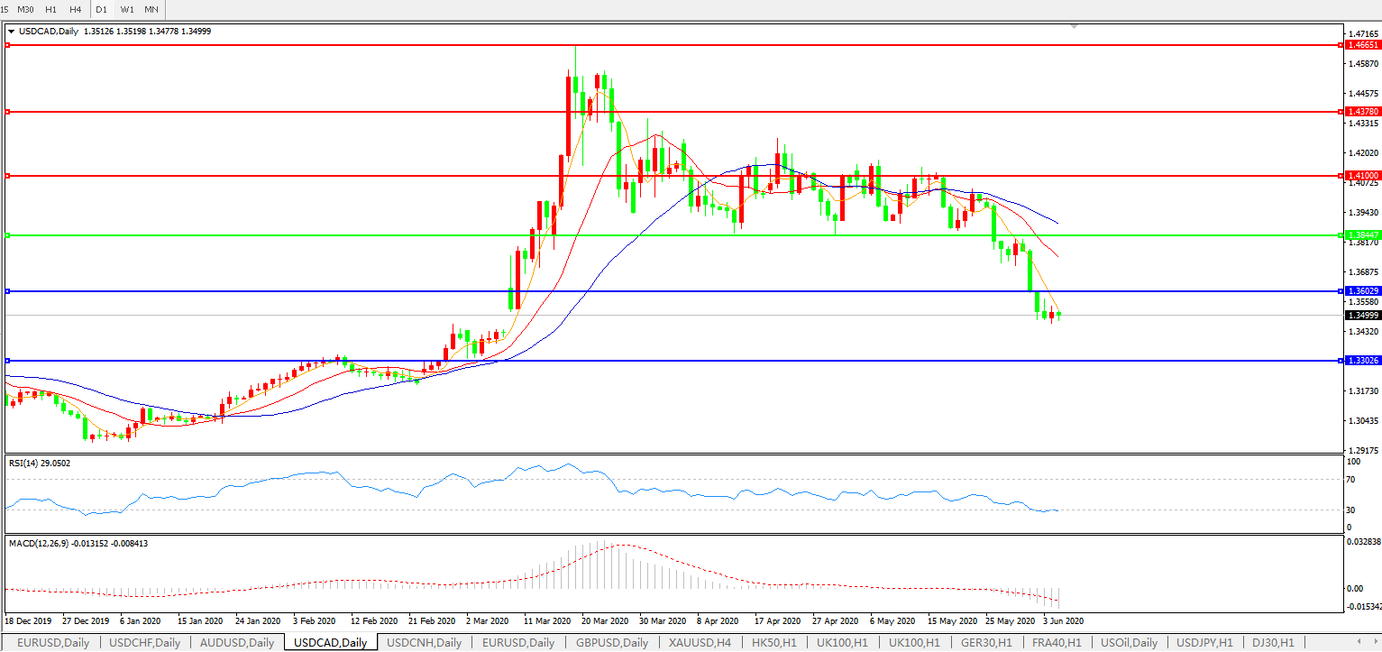 技术面简析:日线图均线呈有序空头排列,汇价逐步有止跌整理迹象,MACD走弱且量能0轴下持续放量,RSI开始走平,预计短期汇价将在整理后进一步走低。