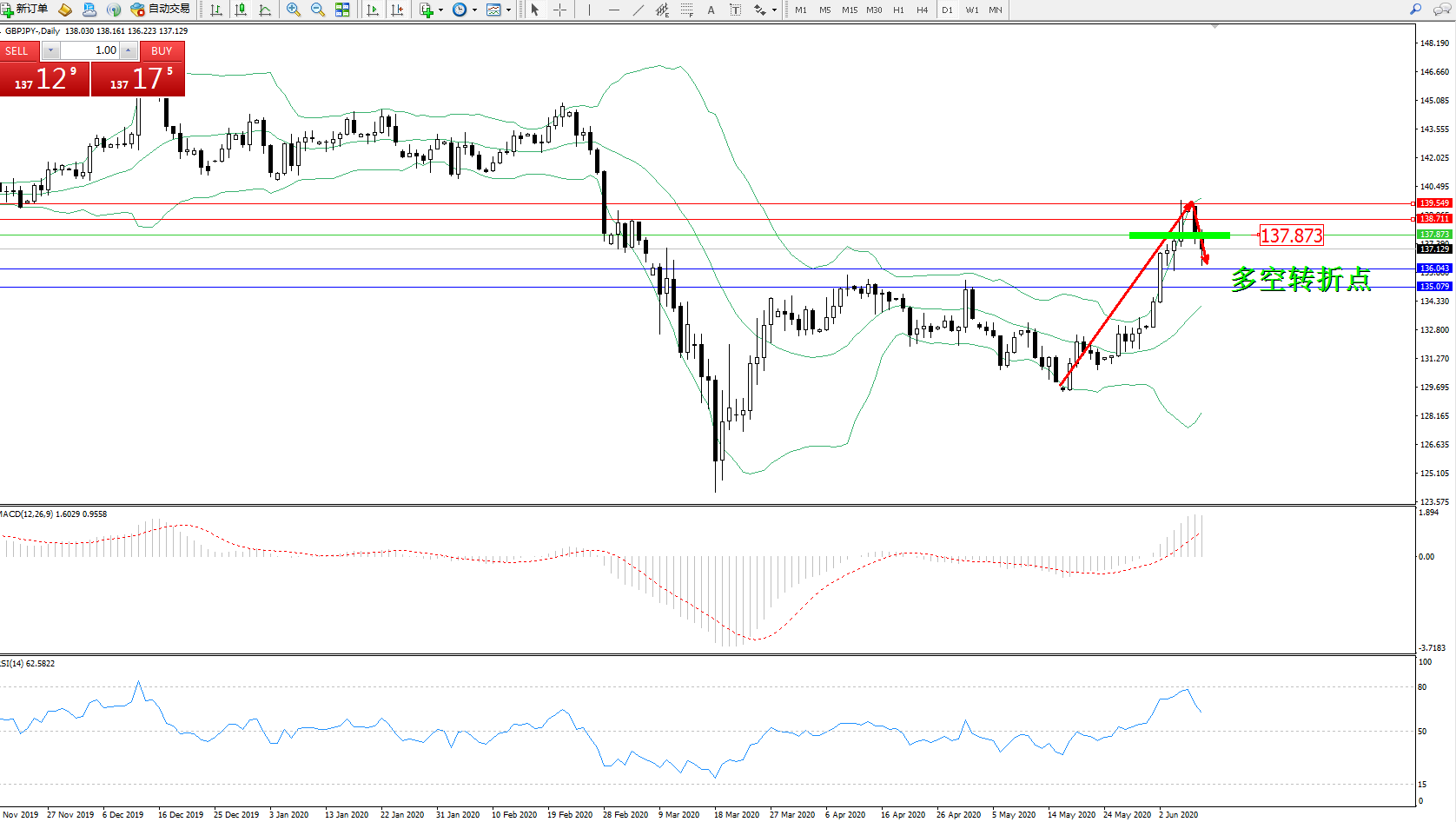 技术点评:多头动力延续布林带指标上轨持续上探后高位遇阻回撤,呈震荡下行态势,布林带指标呈张口走势后开始有收口迹象,高位下行动力或将持续,MACD指标处于0轴线上方多头区域高位有平缓下行态势,RSI指标处于50均衡线上方多头区域高位急速反转下移中;