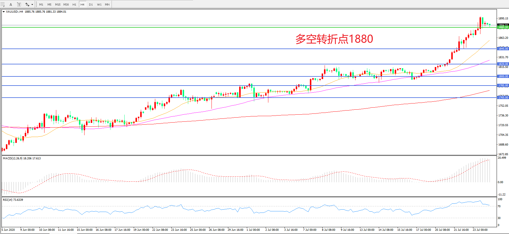 交易策略:在1880.00之上看涨,目标1920.00   1950.00