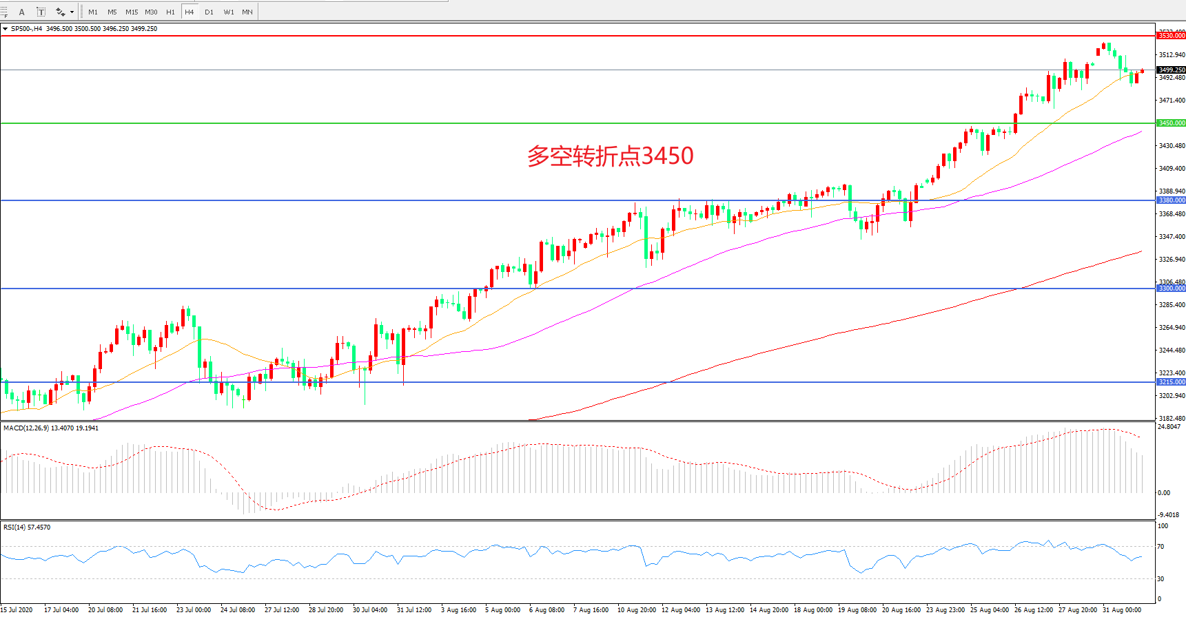 交易策略:在3450.00之上看涨,目标3530.00         3600.00