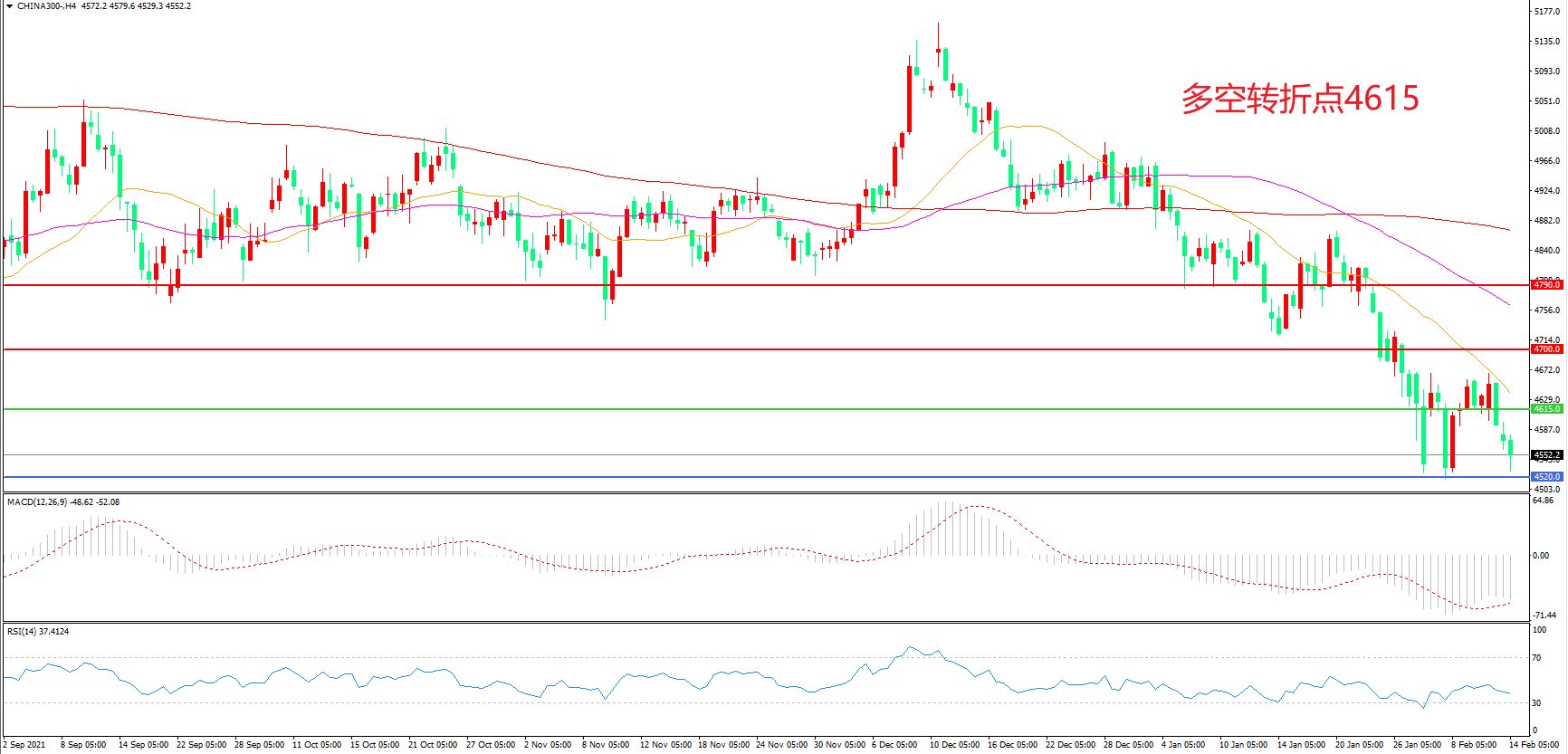 周一(2月14日),东方财富闪崩带动A股惯性下挫,沪指盘中震荡下探,午后跌逾1%,沪深300低开低走,收报4552.2点。两市合计成交8625亿元,北向资金净卖出37.88亿元。大盘低开低走震荡下行,券商极限杀跌影响了市场做多人气,这一波回撤目标位是前面低点,短线来看沪深300指数依然处于震荡筑底格局。