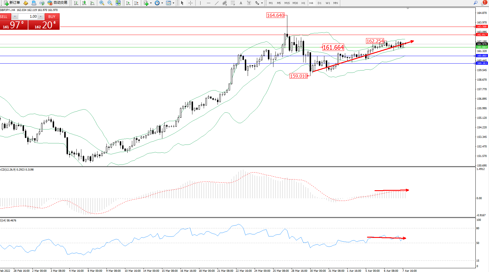 技术点评:多头动力延续布林带指标通道中上轨区间持续震荡上扬,高位抵达162.254位置节点后开始整理平移,短期或维持整理平移走势,布林带指标呈上行趋势拉升通道上移,MACD指标处于多头区域维持整理平移,RSI指标处于50均衡线上側弱势徘徊中;