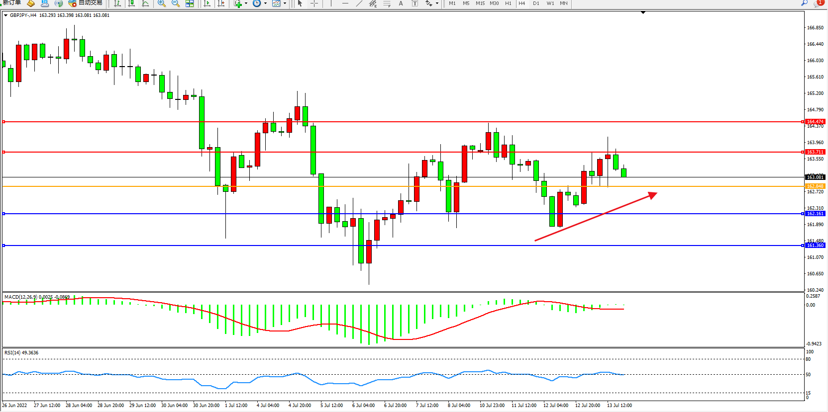交易策略:162.848上方看涨,目标163.711、164.474