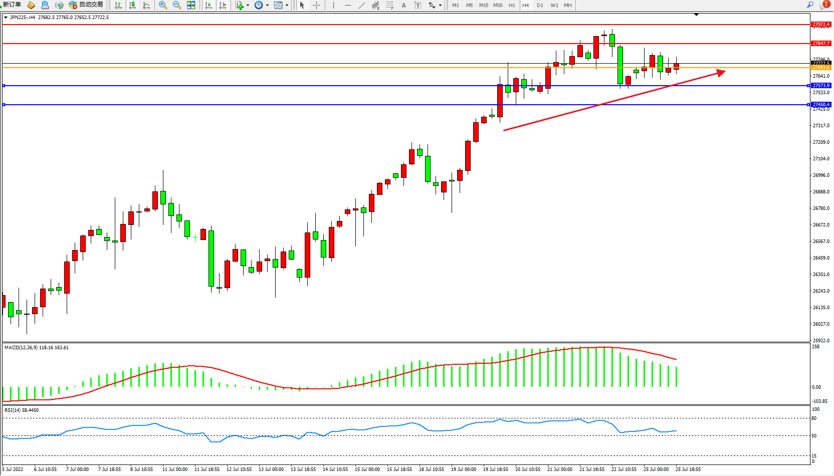 日经225指数7月25日(周一)收盘下跌223.16点,跌幅0.80%,报27691.50点。世卫组织宣布猴痘疫情为“国际关注的突发公共卫生事件”,日本就猴痘发布全球一级旅行警告;日本枥木县一处大型养猪场发生猪瘟疫情,场内约5万4000头猪必须全数遭扑杀。