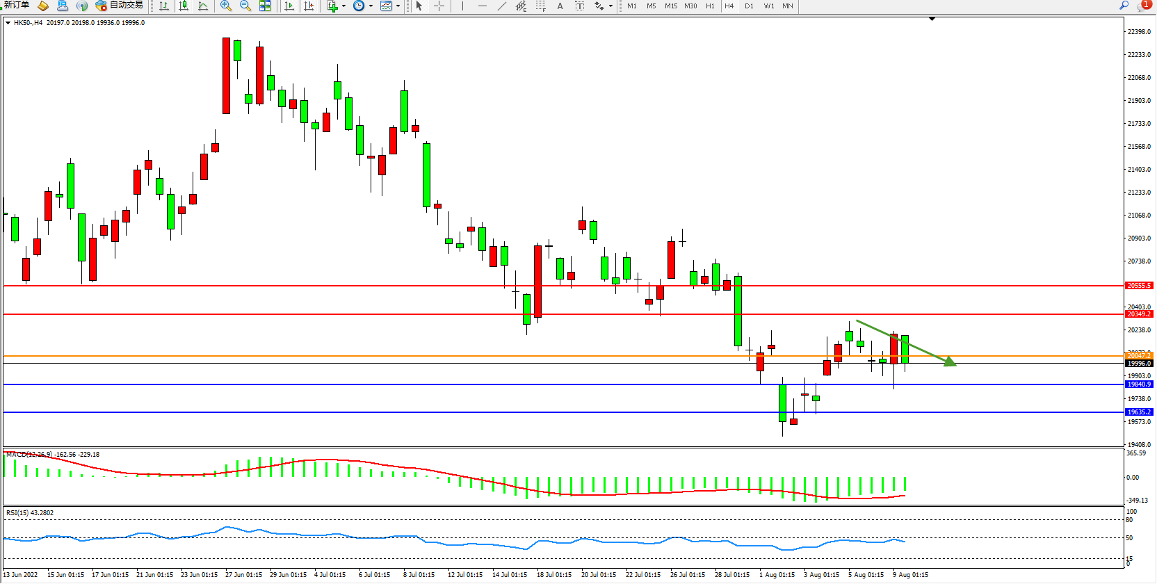 香港恒生指数8月9日(周二)收盘下跌42.33点,跌幅0.21%,报20003.44点;港府澄清没有放宽物业印花税的计划,港股三大指数午后快速转跌吞没早盘全部涨幅。恒生科技指数跌0.93%。今日南下资金净流入5.91亿港元,大市成交额为821亿港元。大型科技股普遍下跌,京东跌近4%,美团、腾讯、网易、百度皆走低;在线教育股全天领跌,三亚等旅游地疫情严峻,因消息传闻影响,香港本地地产股冲高回落明显,但仍多数收涨;机构指长期高煤价下具备大幅提估值空间,煤炭板块全天保持强势。