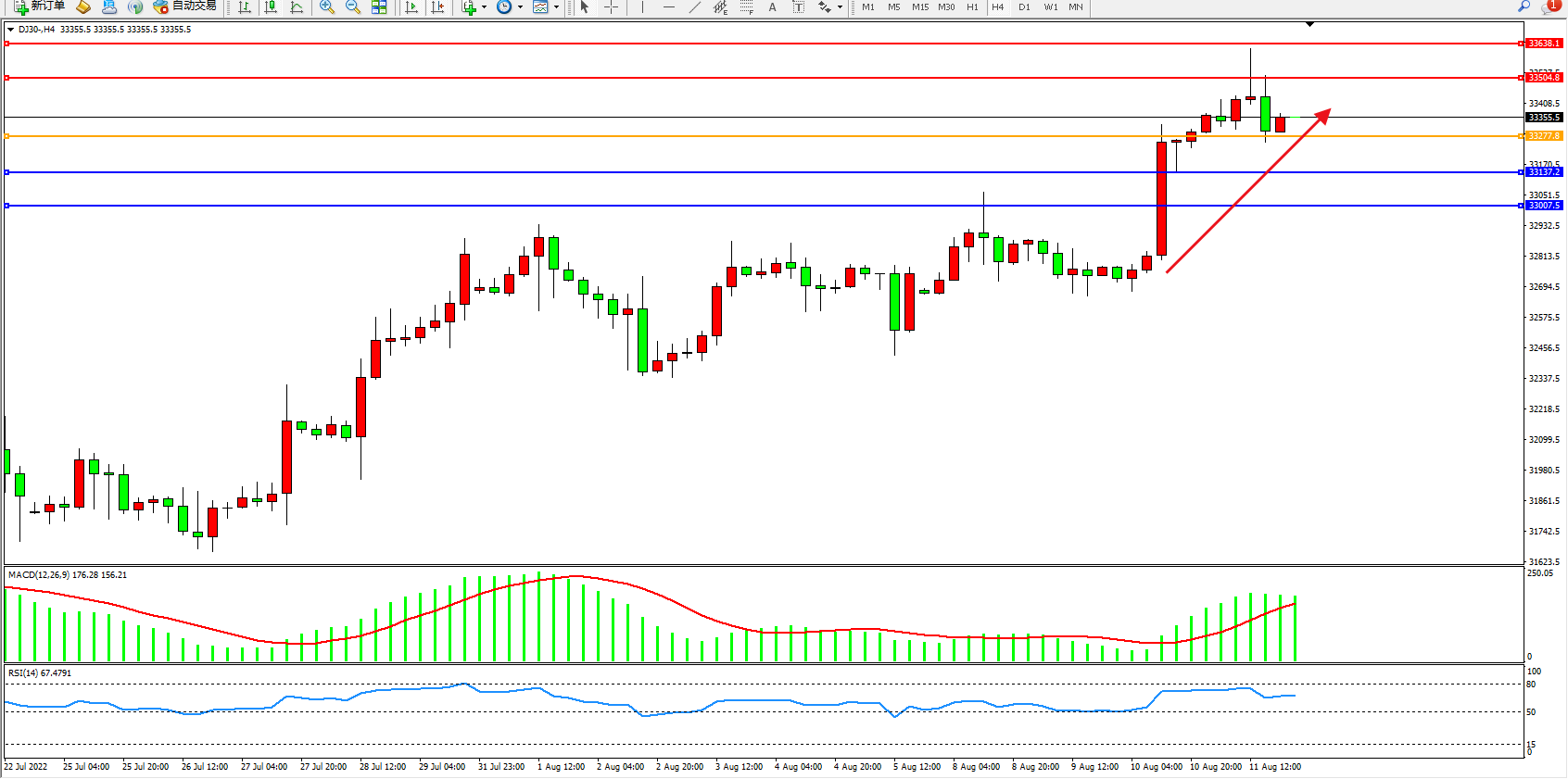 道琼斯指数8月11日(周四)收盘上涨27.03点,涨幅0.08%,报33336.54点;通胀压力一直集中在商品上,但随着新冠大流行缓解,消费者已将支出重新集中到服务上。美联储政策制定者担心,服务业通胀加速将更难解开。