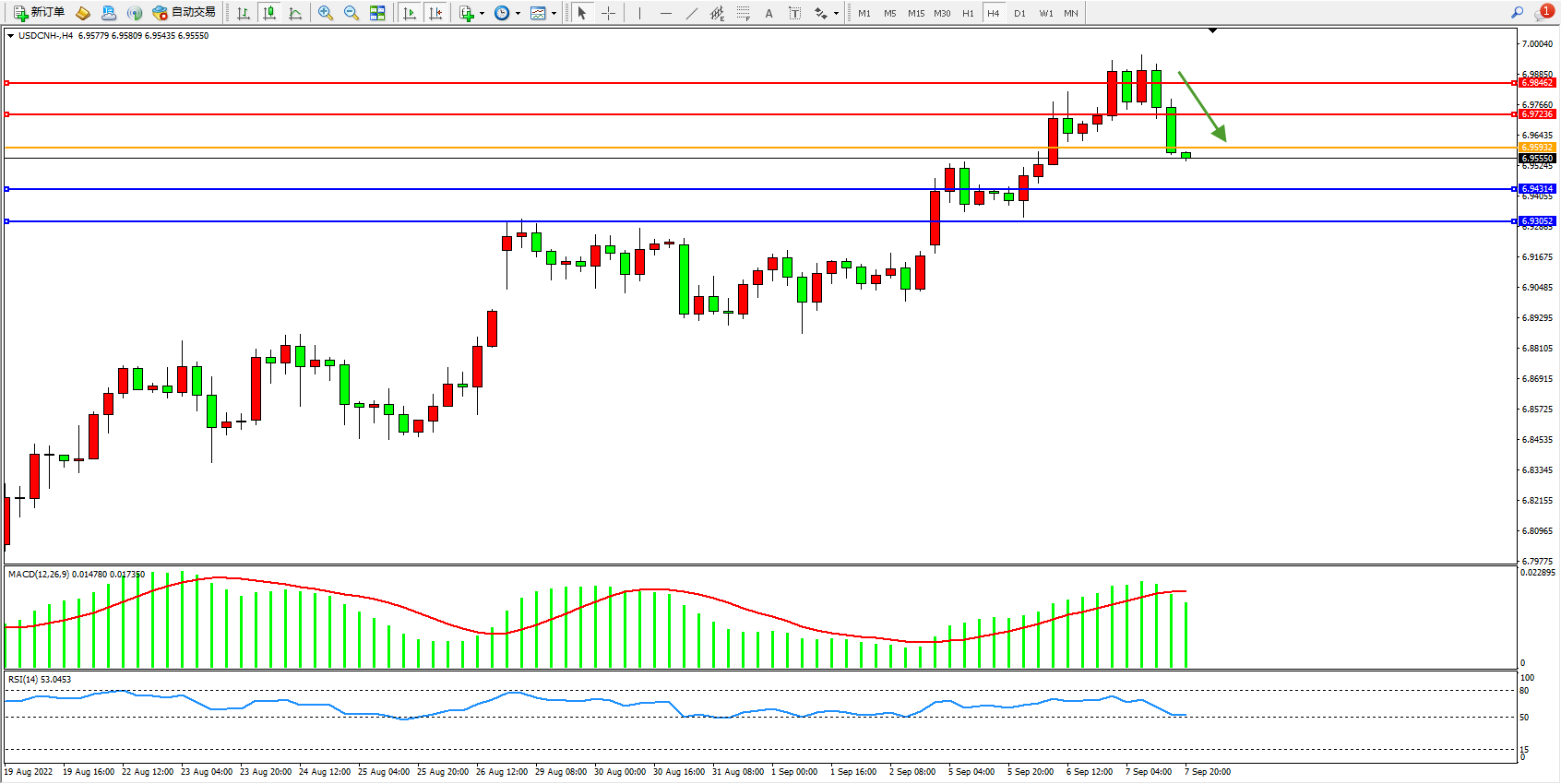 交易策略:6.95932下方看跌,目标6.94314、6.93052