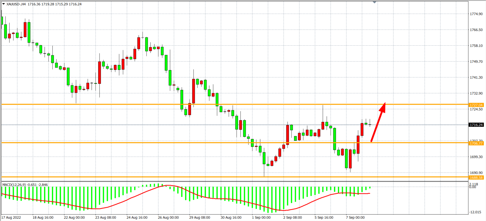 交易策略:在1706.00之上看涨,目标1727.00            1740.00