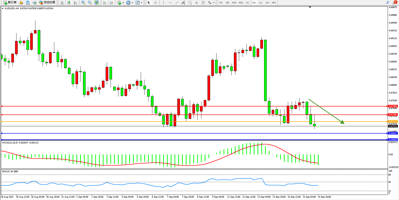 交易策略:0.67117下方看跌,目标0.66837、0.66680