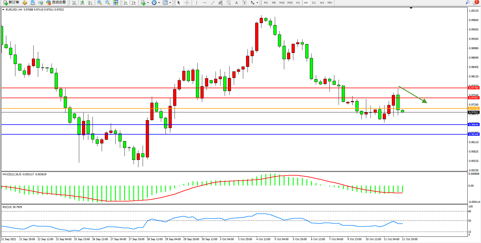 交易策略:0.97135下方看跌,目标0.96646、0.96348