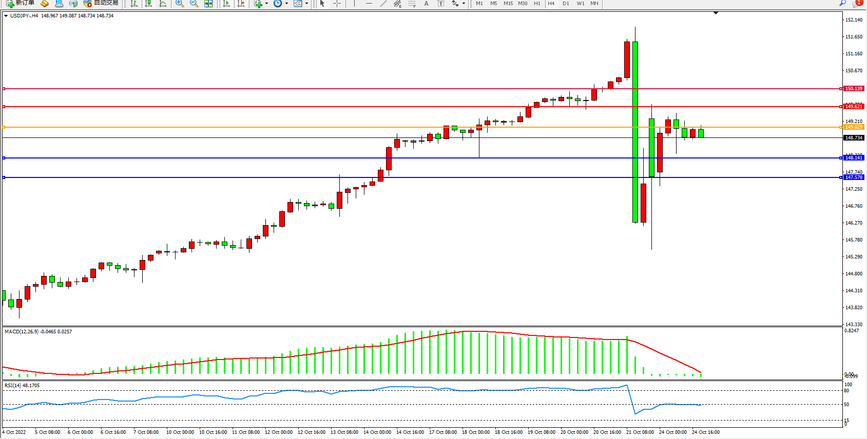 美元兑日圆维持148.734附近震荡,日本当局连续第二天疑似展开干预,日在周一早盘出现大幅震荡,但美元在收益率和避险需求的推动下走强,削弱了为缓和日跌势所作出的努力。