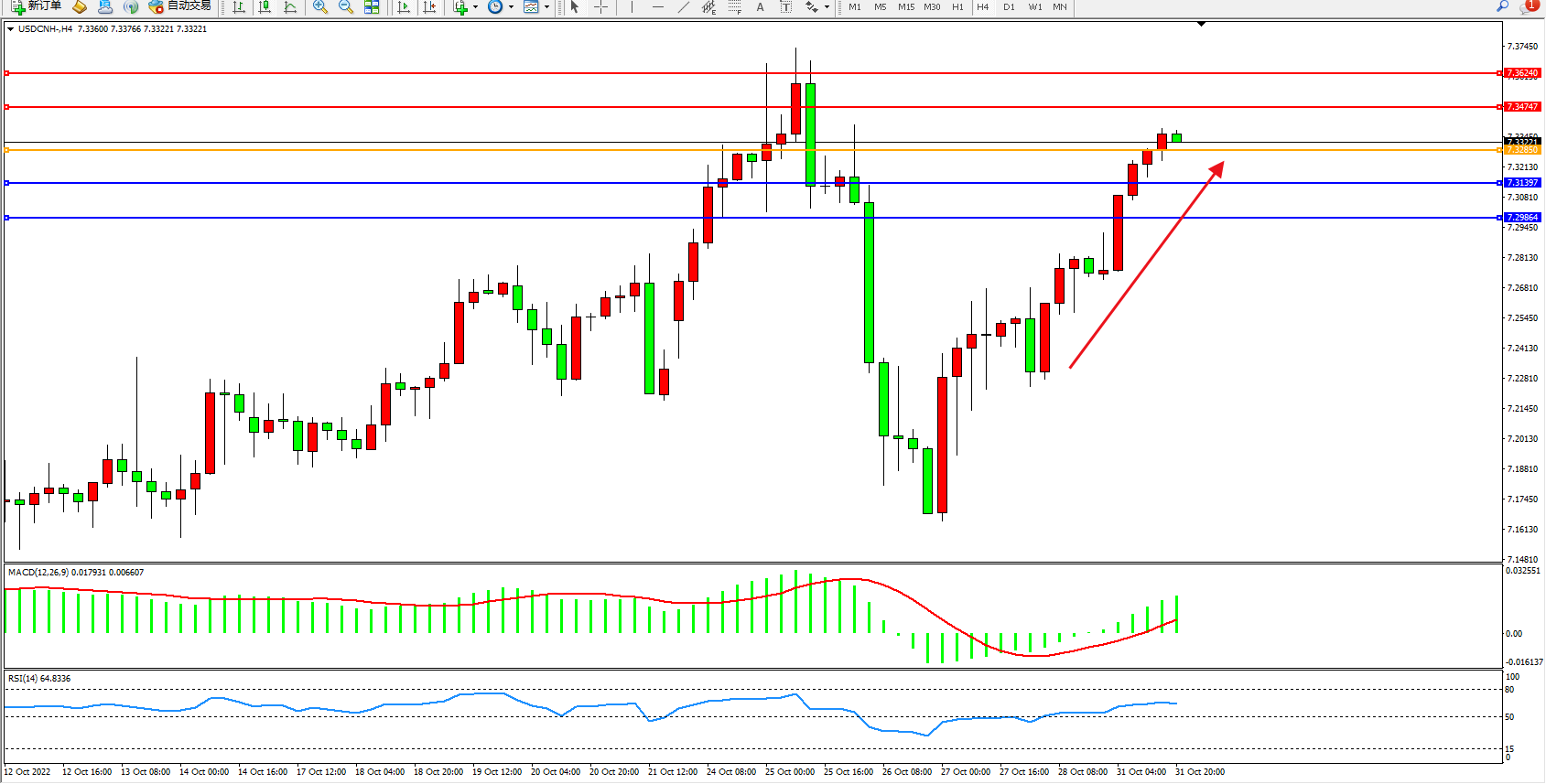 交易策略:7.32850上方看涨,目标7.34747、7.36240