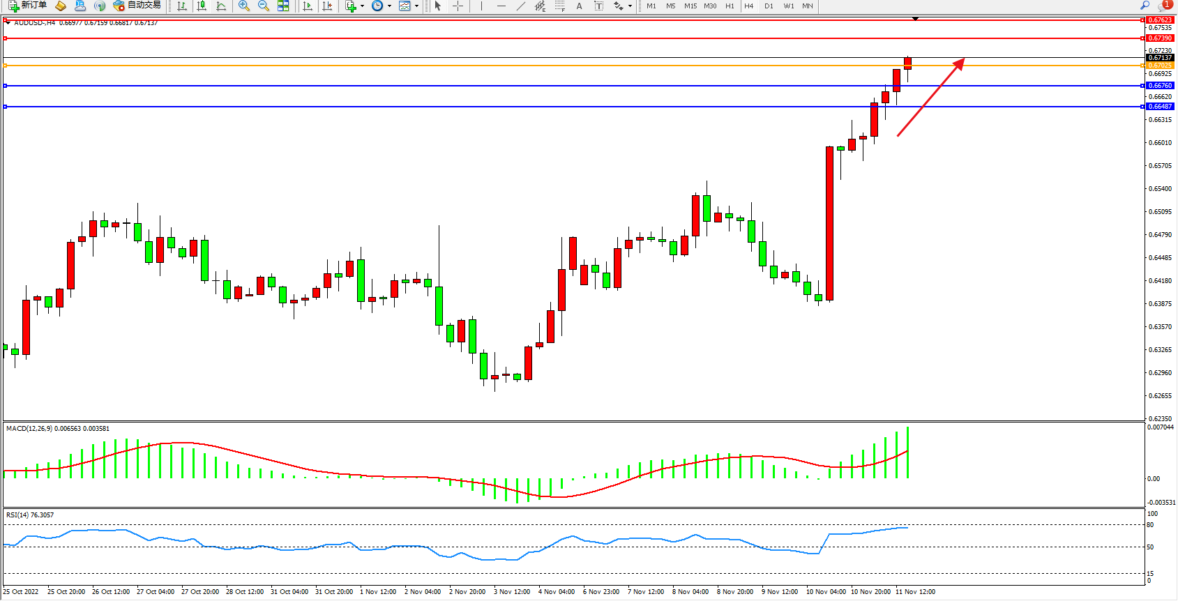 4小时图看:多头动力高位持续上移,短期看涨情绪依旧,市场多头动力不断攀升,MACD指标处于多头区域上行,RSI指标处于多头区域高位上移;