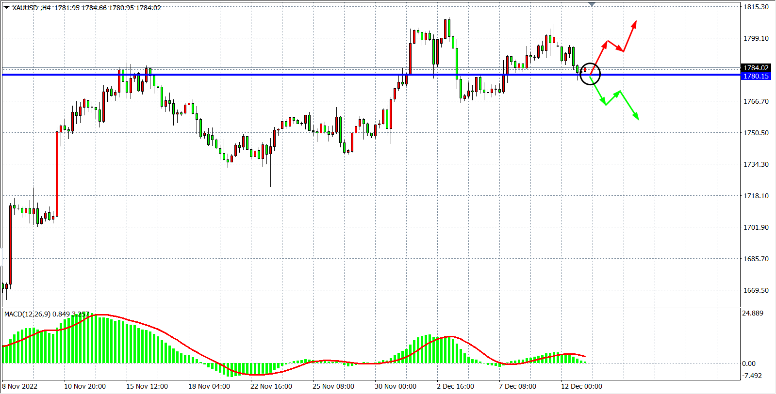 备选策略:在1780.00之下看跌,目标1765.00         1750.00
