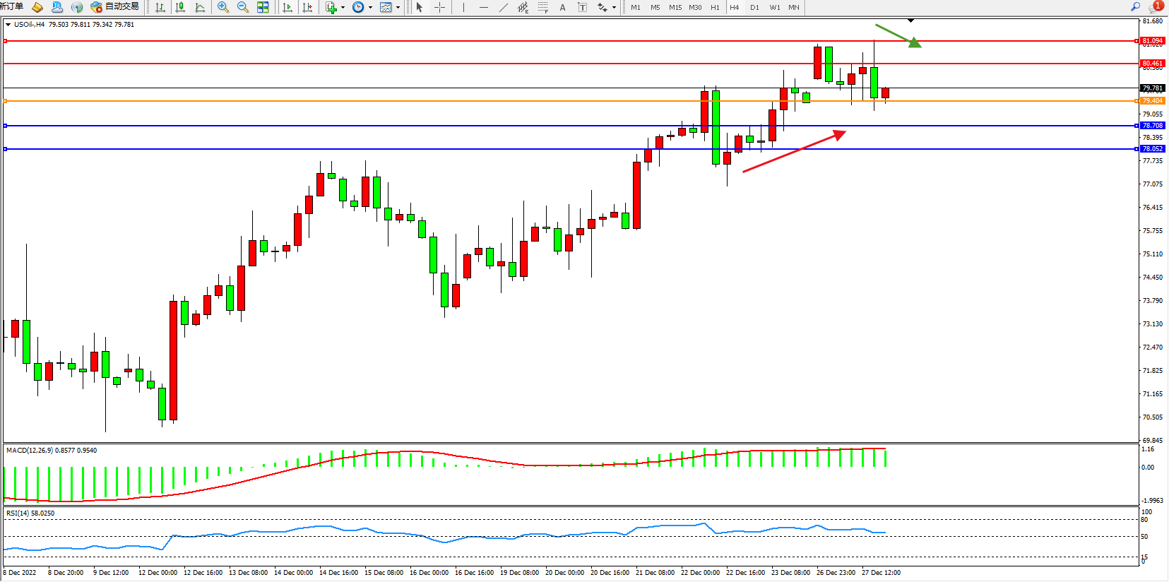 原油维持79.781附近震荡,市场预计欧佩克+将进一步减产。美国政府已宣布有意以NYMEX原油70美元左右的价格补充战略储备。这应该会抵消NYMEX原油期货价格的进一步下滑。