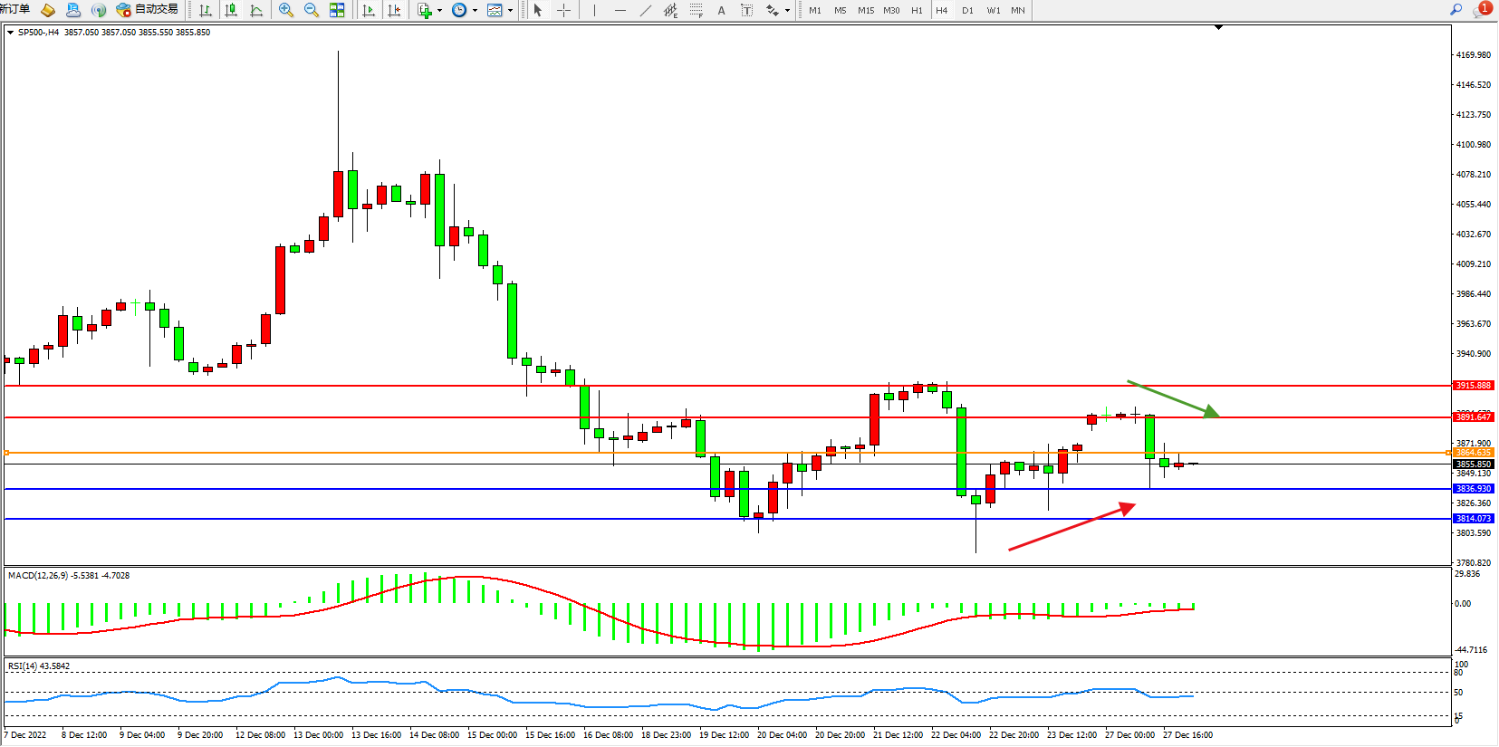 标普500指数12月27日(周二)收盘下跌14.58点,跌幅0.38%,报3830.24点;随着美联储继续暗示宁可过度不可错过,它似乎准备接受经济衰退以确保击败高通胀。鉴于这种情况,我们对从现在开始加息100个基点的预测存在一些上行风险。但鉴于经济衰退和通胀大幅下降的前景,美联储将能够在2023年下半年降息。