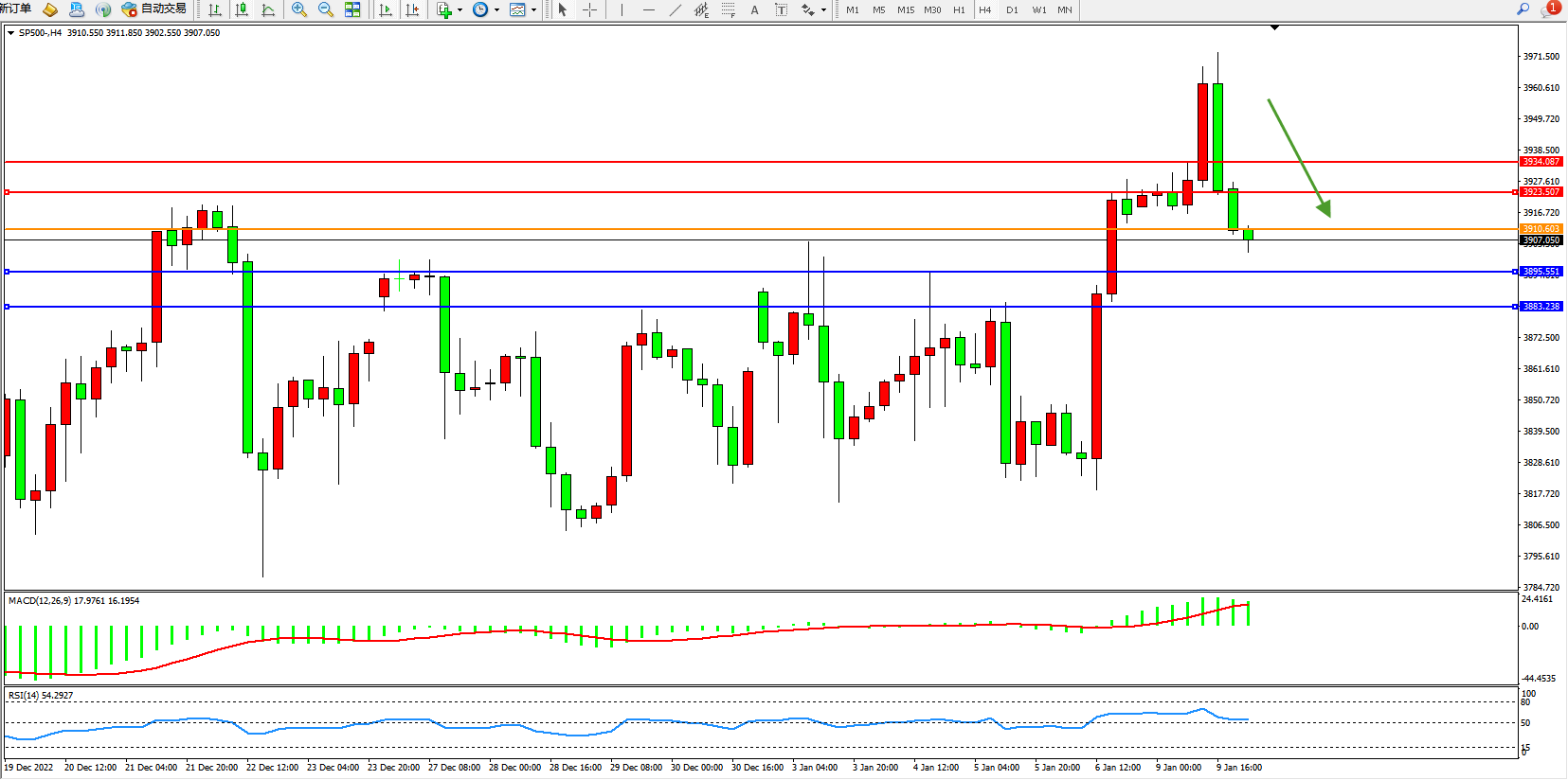 标普500指数1月9日(周一)收盘下跌3.45点,跌幅0.09%,报3891.63点;市场焦点是美联储主席鲍威尔周二(1月10日)讲话和周四(1月12日)将公布的美国12消费者价格数据。市场普遍预计,美国通胀将在2023年下降。