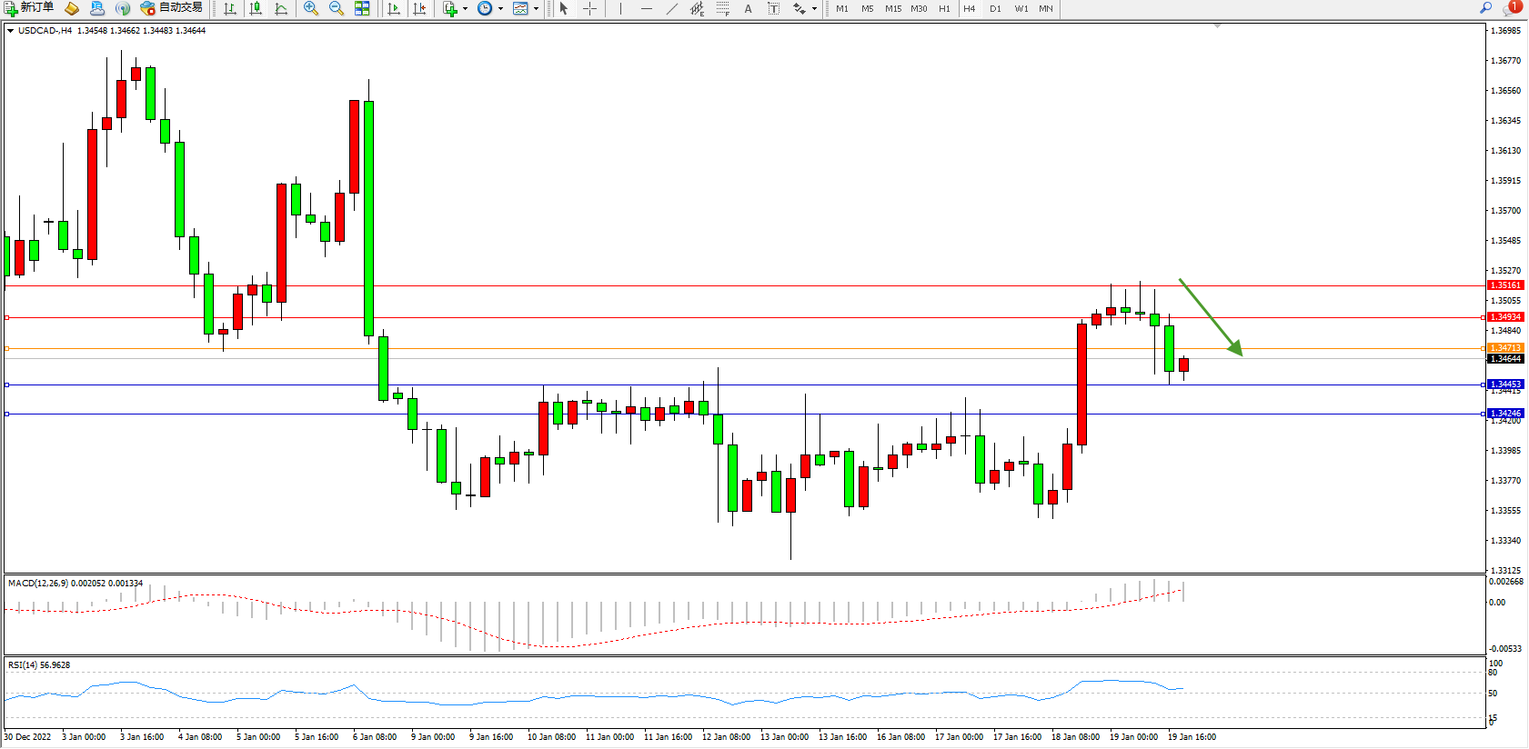 交易策略:1.34713下方看跌,目标1.34453、1.34246