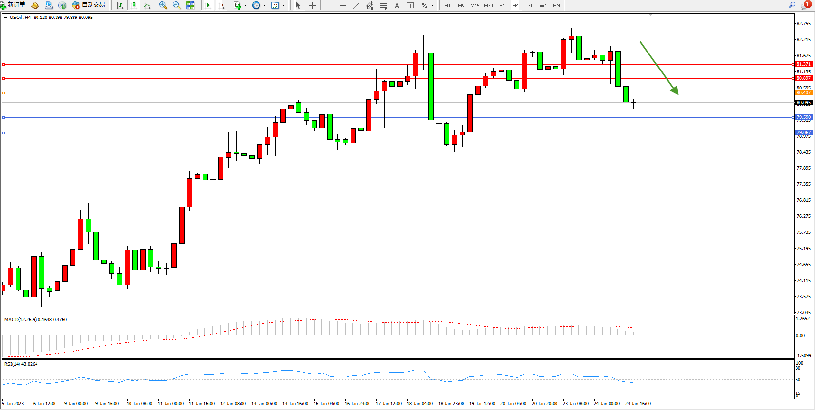 原油USOil——4小时K线图显示: