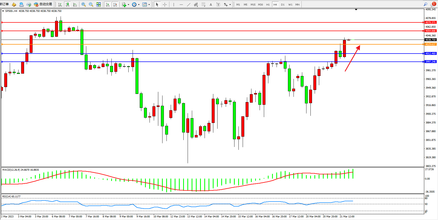 标普500指数3月21日(周二)收盘上涨52.10点,涨幅1.32%,报4003.67点;投资者仍对银行业的命运感到担忧,押注美联储将不得不放慢加息速度,以避免因银行运营困难威胁经济增长而造成更大损害。