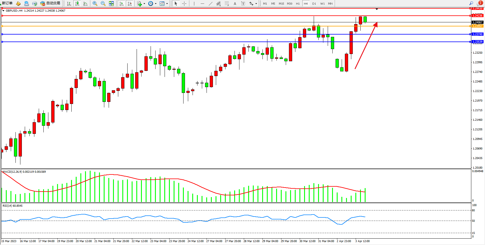交易策略:1.23957上方看涨,目标1.24236 1.24430
