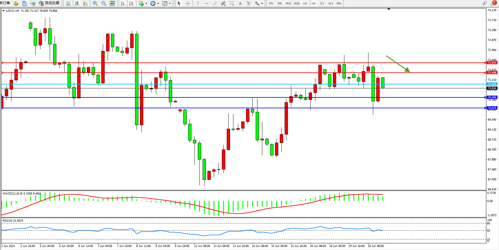 原油维持70.856附近震荡,中国原油进口最近仍然非常强劲。3月份,进口量达到1230万桶/日,为三年来最高水平。5月,它们达到1140万桶/日,比2022年5月的水平高出5%,比2021年5月高出18%。