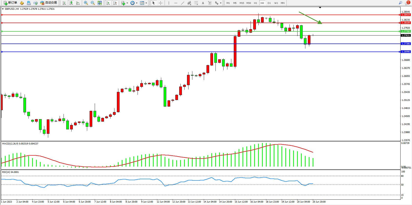 交易策略:1.27780下方看跌,目标1.27306  1.26990