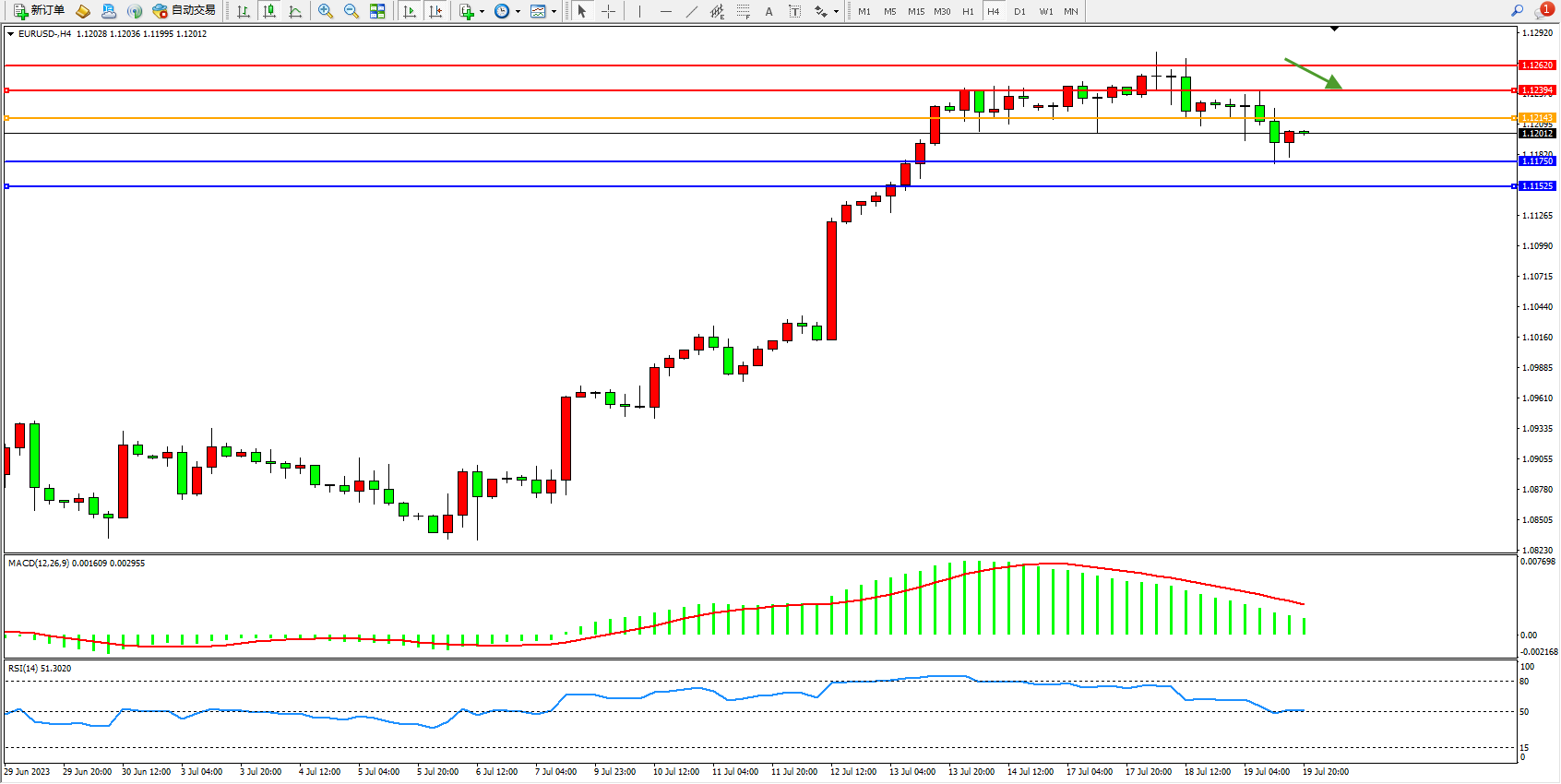 交易策略:1.12143下方看跌,目标1.11750 1.11525