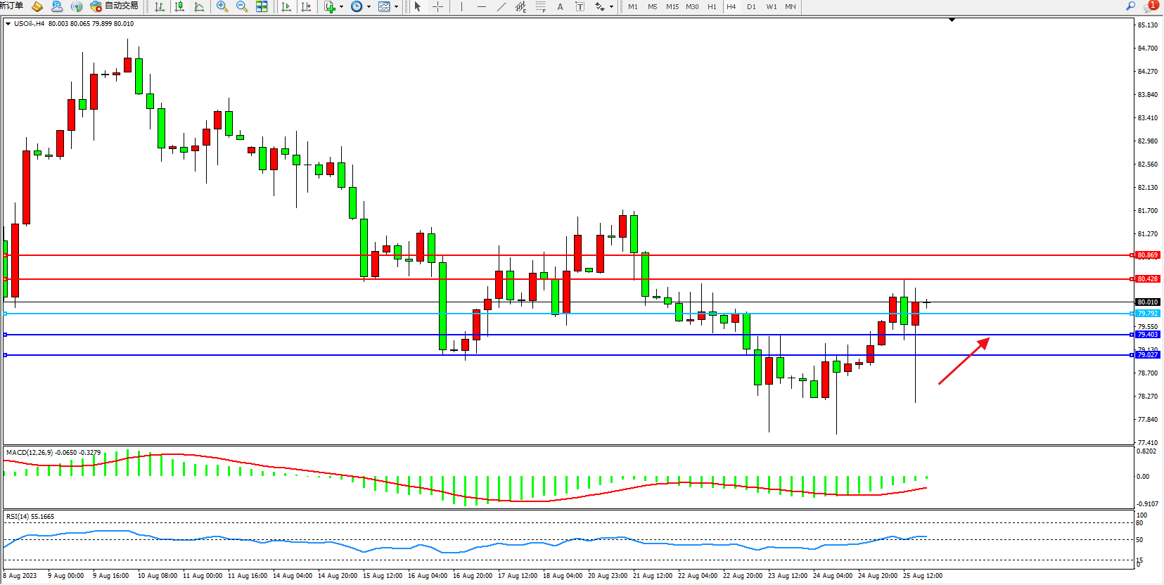 原油维持80.010附近震荡,欧洲最大经济体德国的经济数据疲软,但原油价格仍上涨。在美联储主席鲍威尔表示可能需要进一步加息以对抗通胀后,美元指数升至11周以来最高。