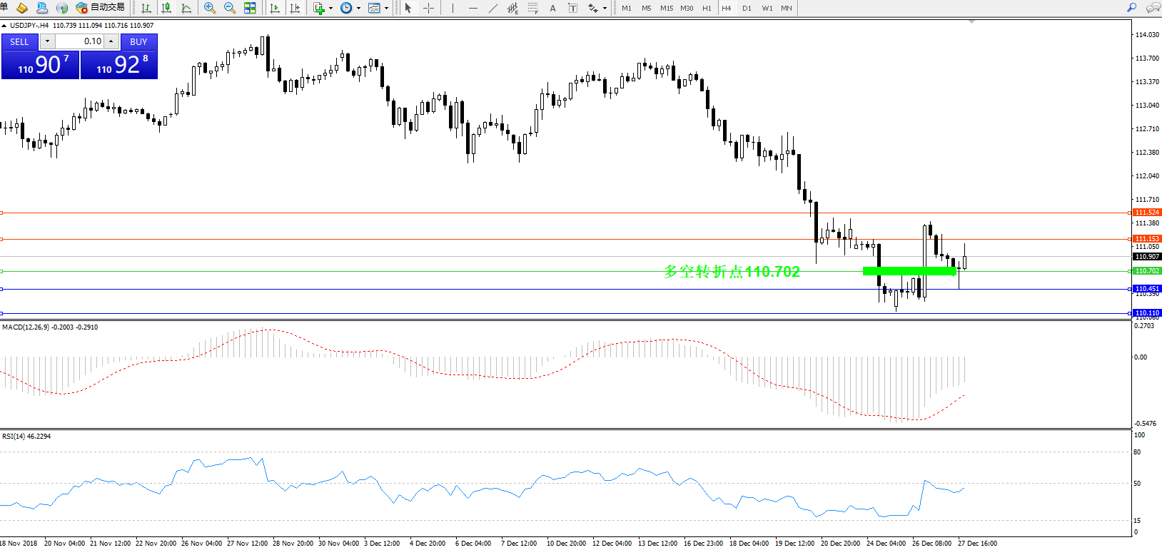 备选策略:110.702下方看跌,目标110.451110.110