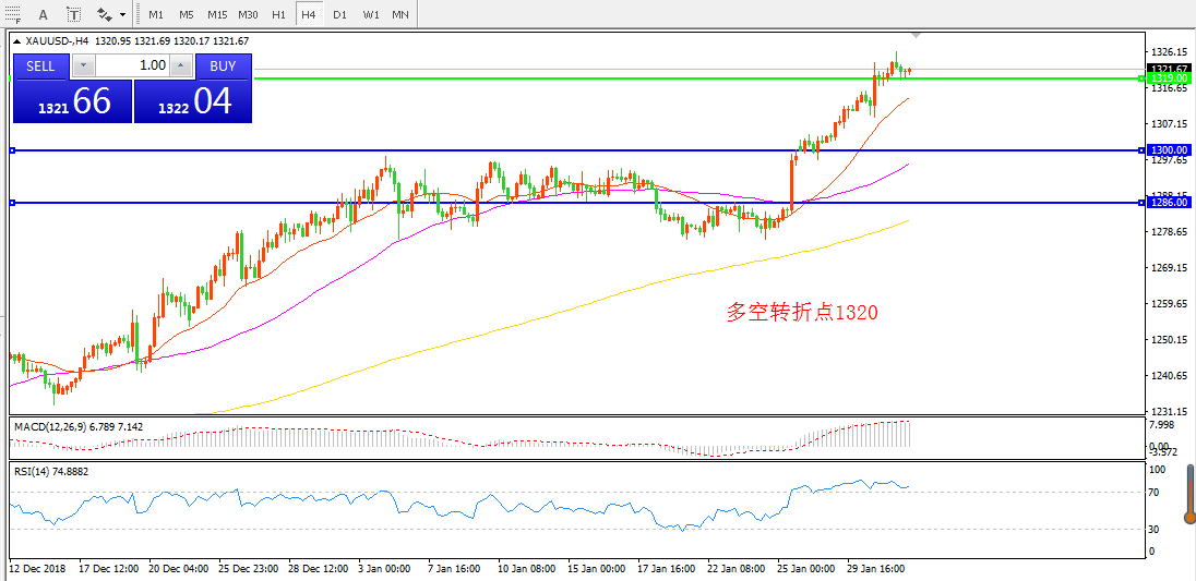 交易策略:在1320.00之上看涨,目标1330.00 1345.00