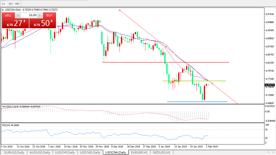 交易策略:6.7650之下,看跌,目标价位为6.7015,然后为 6.6900