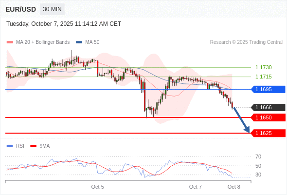 在 1.1695 之下,看跌,目标价位为 1.1650 ,然后为 1.1625 。