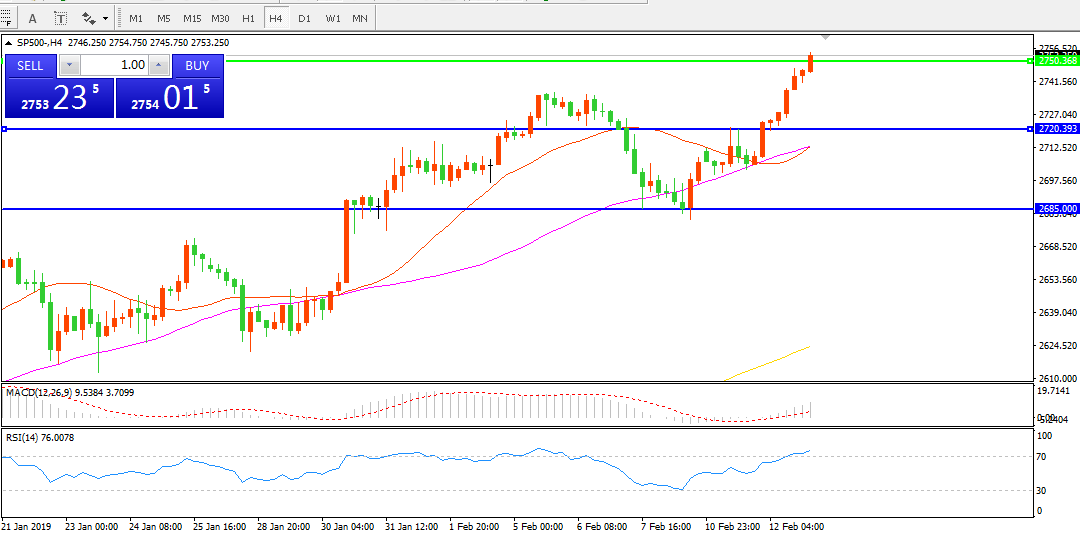4小时图看,SP500逐渐站稳55周期均线,但短期均线拐头形成金叉。MACD红柱增加,短期反弹形态明显。