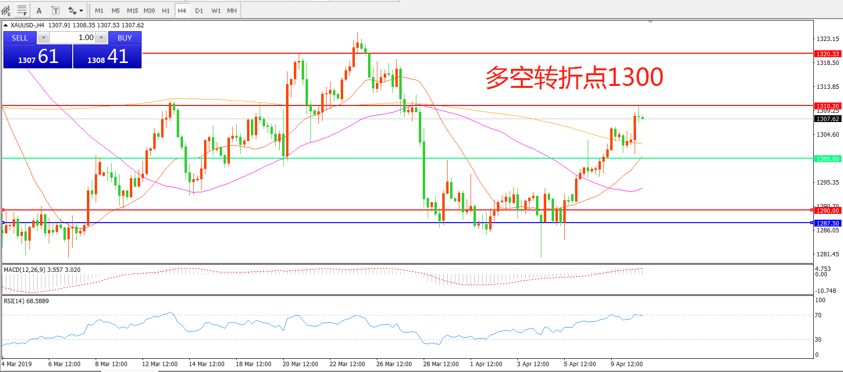 多空转折点:1300.00