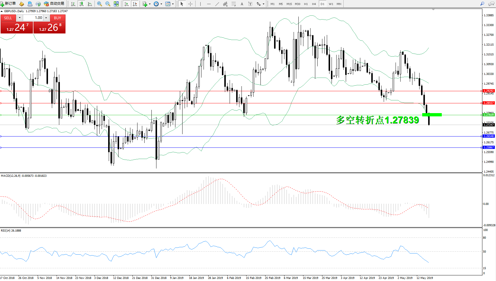 交易策略:1.27839下方看跌,目标1.26548、1.25867