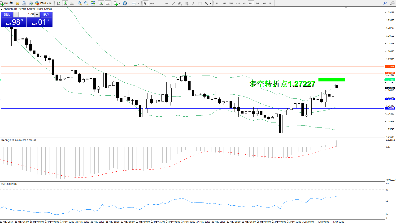 交易策略:1.27227下方看跌,目标1.266491.26372