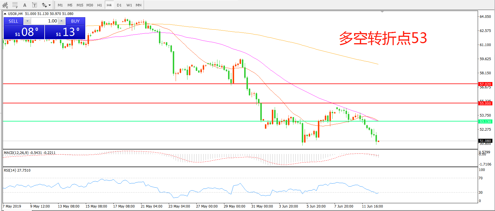 交易策略:在53.00之下看跌,目标50.00    46.00