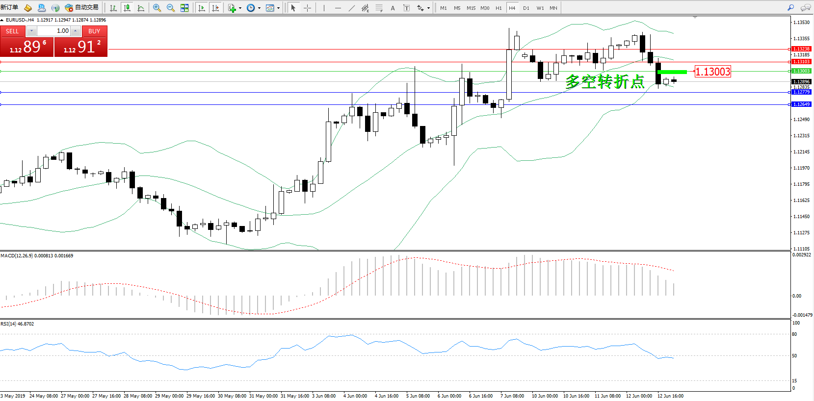 交易策略:1.13003下方看跌,目标1.12779、1.12649